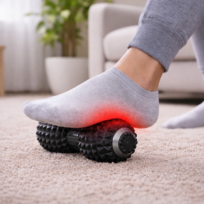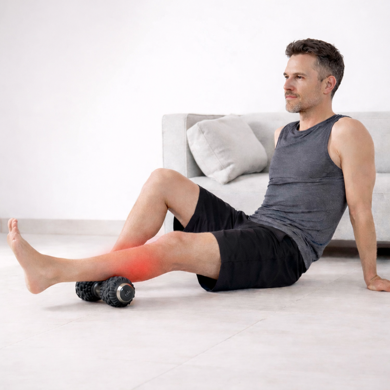 The vibration helps relax tight muscles more effectively than static foam rolling, reaching deeper layers of tissue.